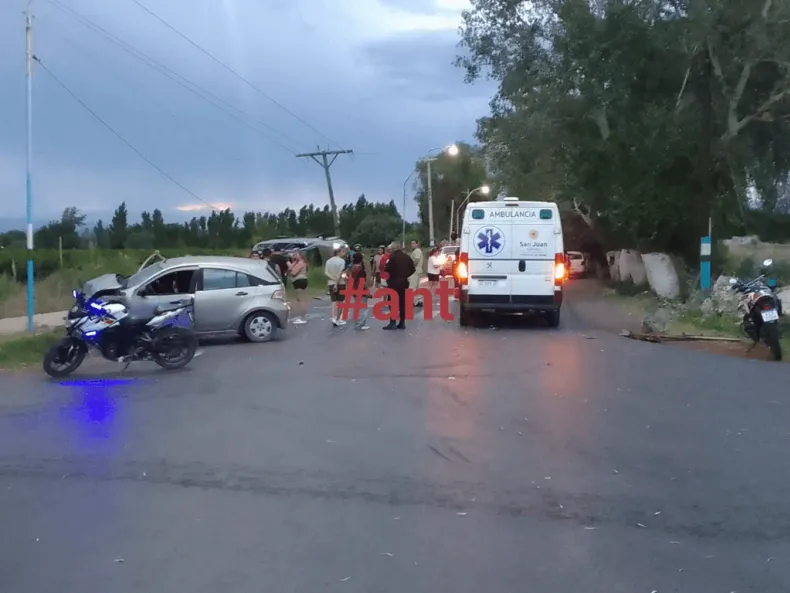 Se desató el caos en Albardón: camioneta volcó tras un choque en un cruce peligroso