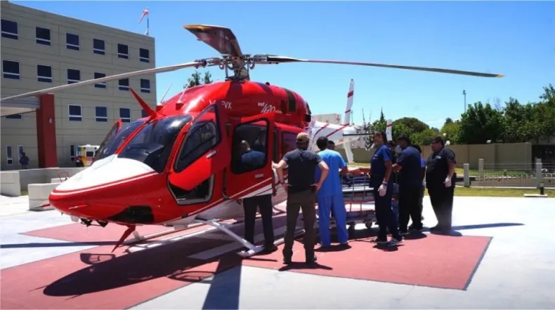 El helicóptero sanitario despegó desde la pista del Aeroclub de Frontera Jáchal, con un vuelo coordinado con diversas fuerzas de seguridad. Al llegar a San Juan, efectivos policiales y bomberos estaban listos para asegurar que el traslado en ambulancia sea rápido y seguro hasta el hospital.