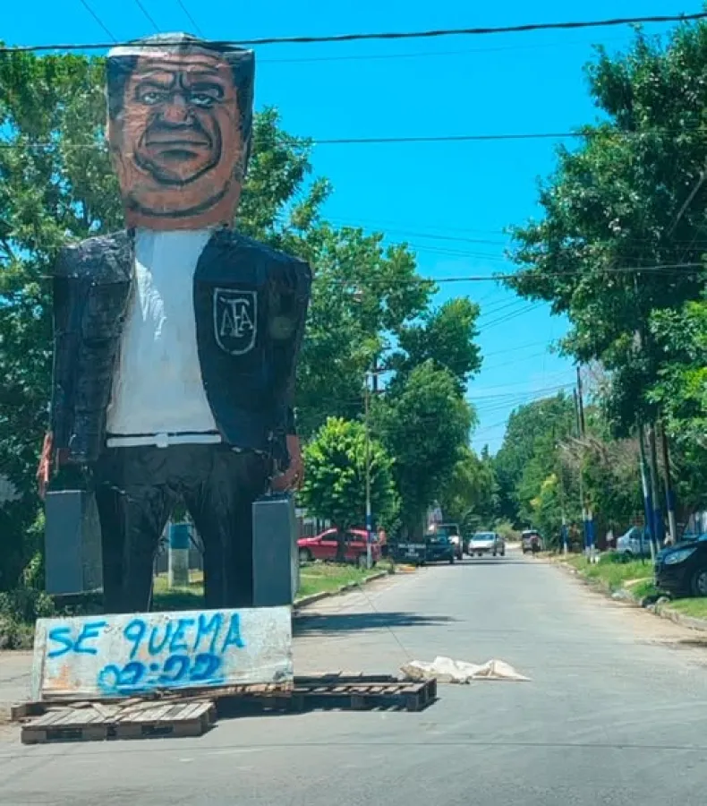 En la localidad de Berisso, justo al ladito de La Plata, un grupo de pibes armó un muñeco de papel con el saco de la AFA y un dibujo que, aunque no es del todo parecido, representa a Claudio "Chiqui" Tapia, el mandamás del fútbol argentino.