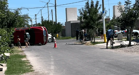 Este domingo, en pleno barrio Stotac de la ciudad de Rawson, se vivió un momentazo de esos que te hacen agarrar la respiración: una camioneta RAM dio vuelta campana tras chocar contra un Fiat Cronos en la esquina de René Favaloro y San Francisco de Asís.