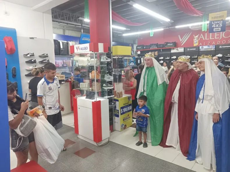 Los Reyes Magos anduvieron esta mañana recorriendo los negocios adheridos en el departamento de Rawson, con el apoyo de la Cámara de Comercio del Interior. Pasaron por zonas comerciales clave como Coloso, Avenida Mendoza, Superiora y Calle Vidart, prendiendo la mecha de la magia navideña.