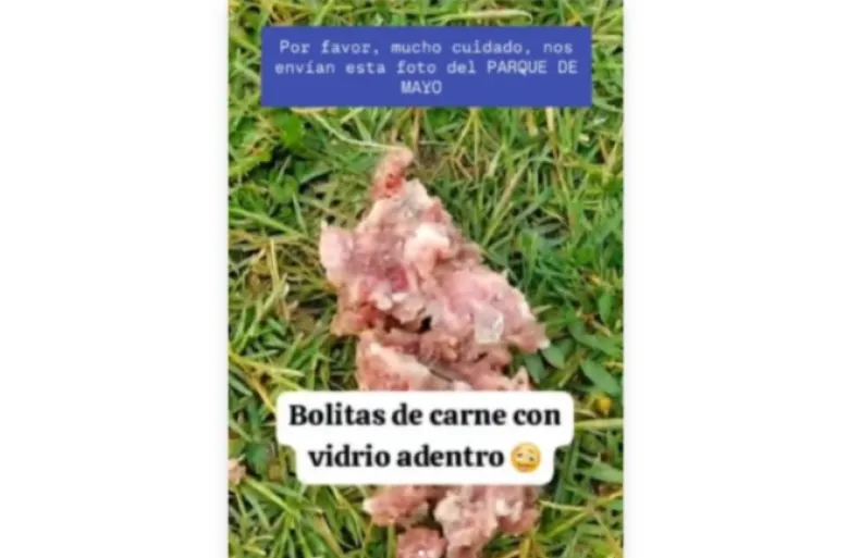 "CUIDADO. Bolitas de carne con vidrio adentro en el Parque de Mayo", advirtieron en las redes sociales, dejando a todos con el corazón en la boca. Esta maniobra macabra no sólo pone en jaque a los perros que salen a pasear con sus dueños, sino también a los animales callejeros que, sin saber, pueden engullir estas trampas mortales.
