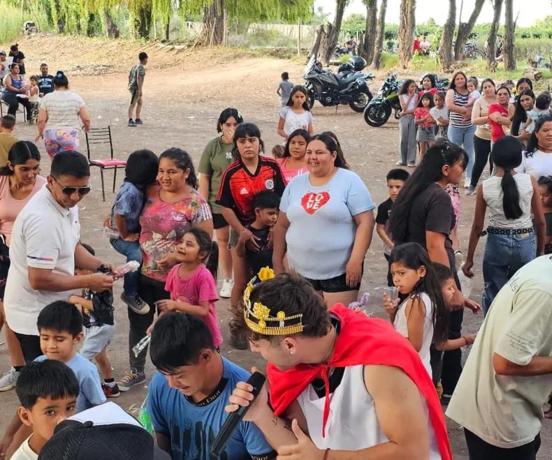 Juan Pablo tomó el micrófono y se lanzó a conducir la jornada, armando competencias como el juego de la silla, actividades para los más chiquitos y también para las mujeres adultas. Hubo carcajadas, bailes, cantos y momentos con una carga emocional que todavía vibra en quienes participaron.