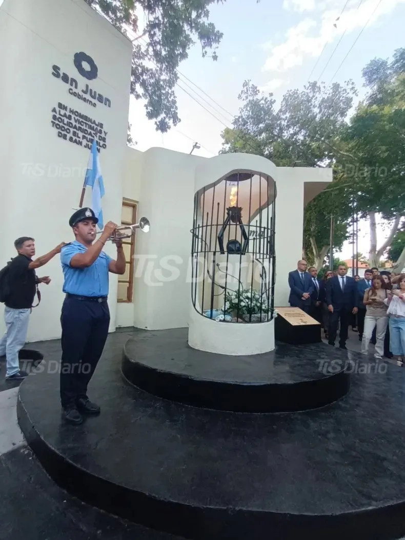 Luego del encuentro formal, Santilli acompañó al gobernador en el homenaje a las víctimas del sismo que arrasó gran parte de la ciudad el 15 de enero de 1944 y se cobró entre 8.000 y 10.000 vidas, número que jamás se pudo precisar con exactitud.