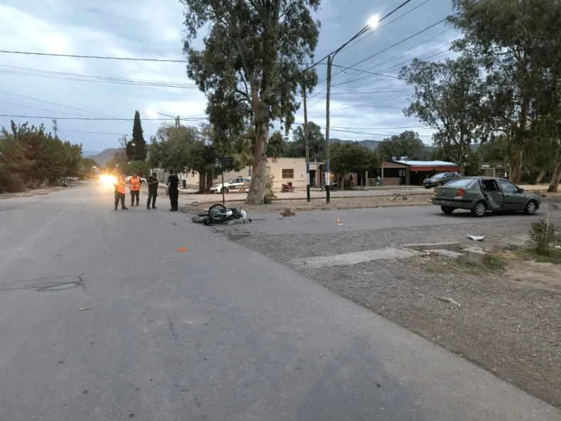 El viernes por la noche, la calma en Marquesado, departamento Rivadavia, se vio interrumpida por un terrible accidente que dejó a dos jóvenes en una situación delicada. Eran las 20:40 cuando en la intersección de las calles San Sebastián y Enrique Godoy pasó lo impensado: un Renault Clio y una moto Corven protagonizaron un choque impresionante.