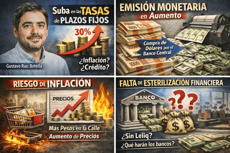 Explicó que mientras el Tesoro trabaja con su superávit, es dinero que ya venía de adentro, el Banco Central para comprar esos dólares emite nuevos pesos. Eso, para Ruiz Botella, es la llave de todo este enredo: más pesos en la economía si no encuentran dónde ir, terminan alimentando la fogata de la inflación.