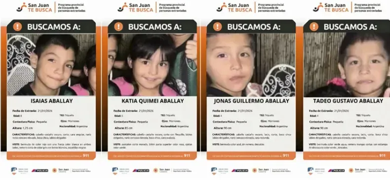 En pleno mediodía de un jueves complicado en Santa Lucía, se logró encontrar a los cuatro hermanitos que habían sido arrebatados por sus propios padres, quienes ignoraron una restricción judicial que los alejaba de los chicos.