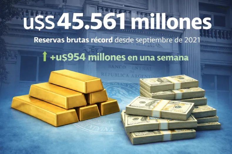 Las reservas internacionales del Banco Central llegaron a los 45.561 millones de dólares impulsadas por la suba del oro y las compras en el mercado oficial, marcando un récord en más de cuatro años.