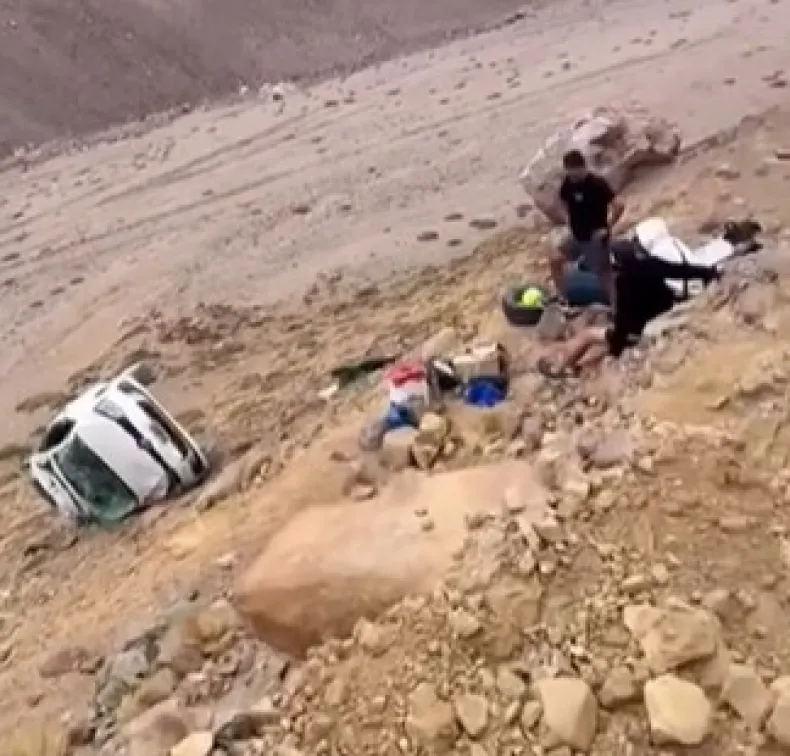 Un auto protagonizó un vuelco tremendo a pocos kilómetros del ingreso al camino internacional en el Paso de Agua Negra. Aunque la caída fue peligrosa, la familia salió ilesa y está bien.