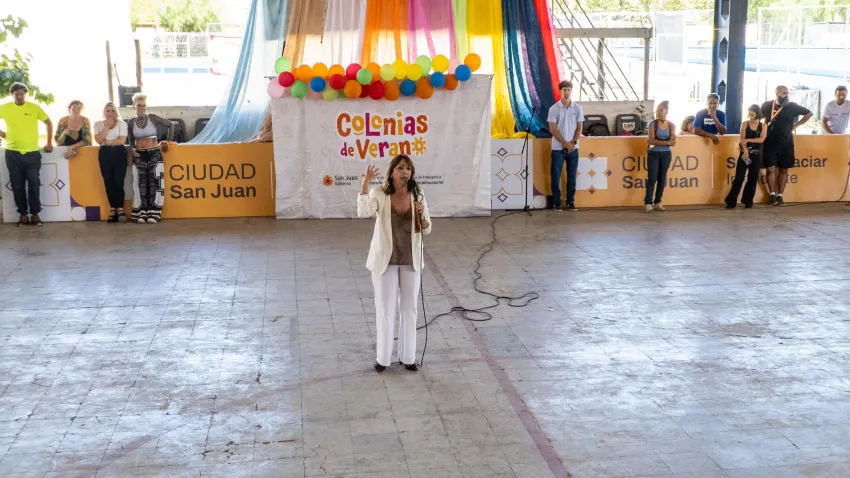 La Municipalidad de la Ciudad de San Juan realizó el cierre de la Colonia de Verano 2026, una política pública que se consolidó como un verdadero espacio de cuidado y encuentro para niños, adultos mayores y personas con discapacidad. El acto contó con la presencia de la intendente Susana Laciar; el diputado nacional, Carlos Jaime; el ministro de Familia y Desarrollo Humano, Carlos Platero; el ministro de Turismo, Cultura y Deporte, Guido Romero; la directora de Emergencia y Políticas Alimentarias, Lorena Acosta, concejales y funcionarios municipales. Todos compartieron una jornada que celebró el trabajo colectivo y el impacto social de la propuesta.