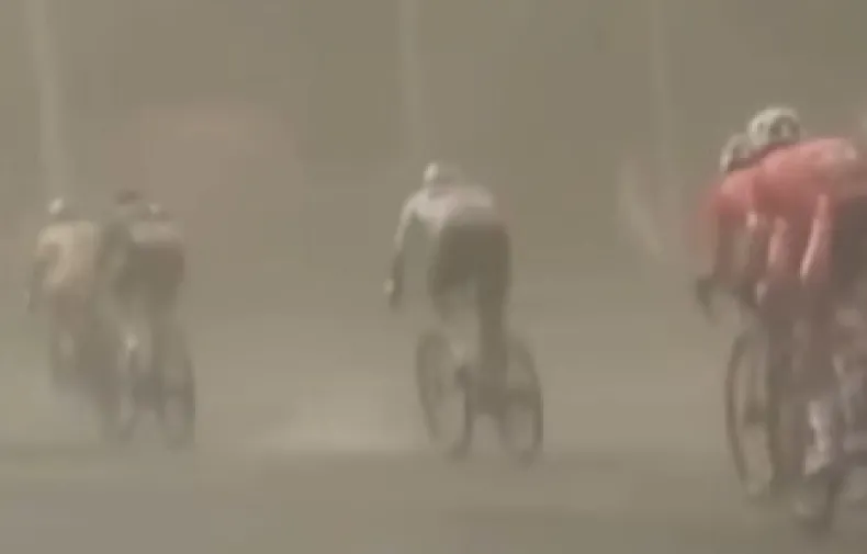 El viento, protagonista en la Vuelta a San Juan: los ciclistas terminaron atrapados en una nube de polvo