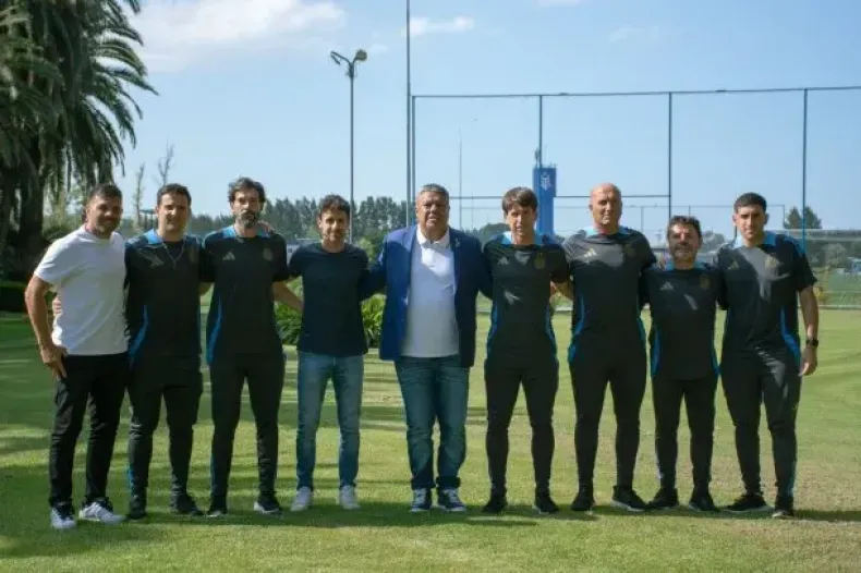 Claudio "Chiqui" Tapia junto a figuras como Pablo Aimar y Diego Placente ratificaron la continuidad de los cuerpos técnicos de todas las categorías y disciplinas, garantizando un ciclo estable hasta el próximo Mundial.