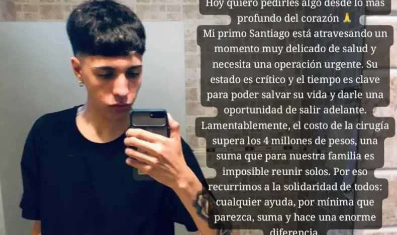 "Hoy necesitamos de la ayuda de todos. Con solidaridad y amor podemos acompañar a Santiago en este momento tan difícil", expresaron sus familiares, agradeciendo profundamente a cada persona que colabore, done o difunda el pedido.
