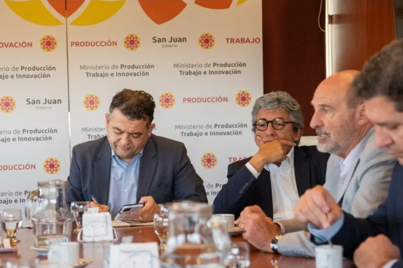 Gustavo Fernández, Ministro de Producción, Trabajo e Innovación de San Juan, y su colega mendocino Rodolfo Vargas Arizu, acompañados por sus Secretarios de Agricultura, se reunieron con representantes de la Cámara Argentina del Mosto para charlar sobre lo que se viene con la vendimia y la situación movida del mercado global.