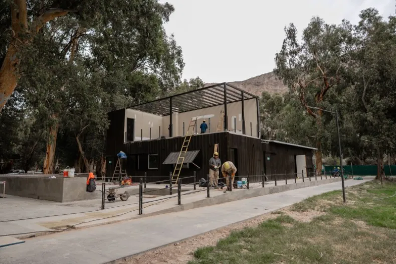 Al mismo tiempo, instalan más luminarias en las zonas comunes para que no falte luz y seguridad cuando cae la noche. El equipamiento urbano también está prendido, con mesas, bancos y asadores puestos en casi todo el predio; siguen rematando detalles con dispensarios de agua y bachas para lavar.