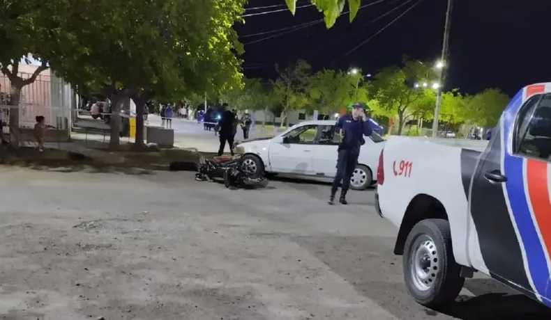 En la oscuridad de la noche, alrededor de las 23 horas, la tranquilidad del barrio se rompió con un golpe brutal entre un Chevrolet Corsa y una moto enduro de 150 cc en la intersección de Rizo y Capdevila, en Rawson. El conductor del auto, Domingo Alberto Castillo, de 44 años, fue quien se encontró frente a esta tragedia.