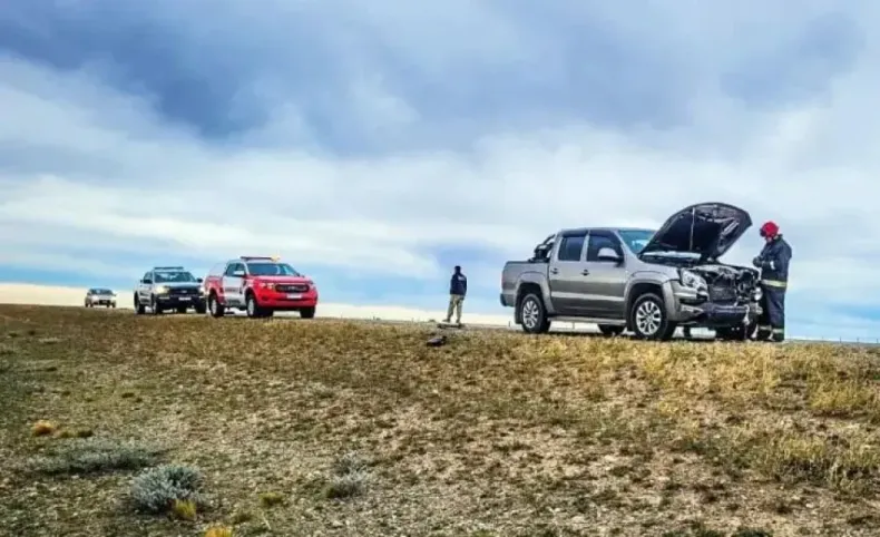 Una camioneta que viajaba por Santa Cruz terminó con la trompa hecha pelota tras cruzarse con un guanaco, pero los tres pasajeros salieron caminando y sanos como una manzana.