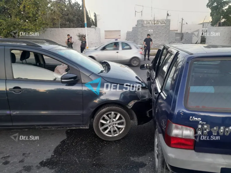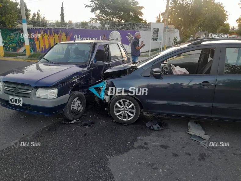 El impacto se produjo cuando un Volkswagen Suran colisionó a un Fiat Uno en plena intersección. Los ocupantes del segundo vehículo debieron ser trasladados al Hospital Rawson para su atención.