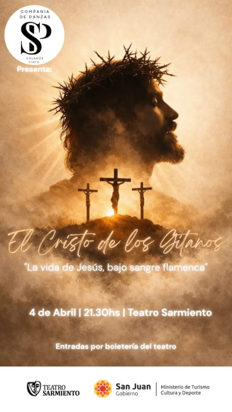 El próximo sábado 4 de abril, el Teatro Sarmiento será escenario de una propuesta bien particular: El Cristo de los Gitanos, "la vida de Jesús, bajo sangre flamenca", bajo la dirección general de Solange Pinto.