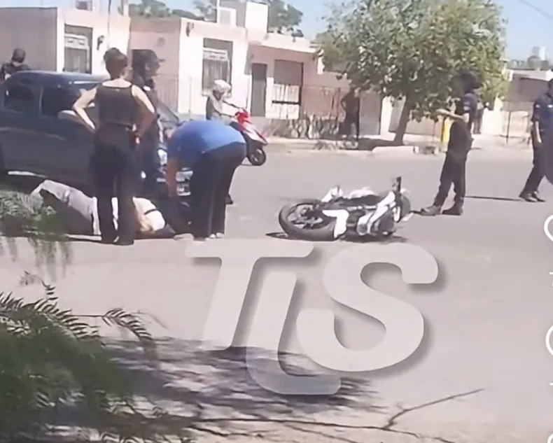 Un fuerte choque sacudió la mañana de este jueves en el cruce de calle Tacuarí y Triunvirato, en Rawson. En el siniestro estuvieron involucrados un auto y una moto, y el motociclista terminó en el piso, con asistencia médica en el lugar.