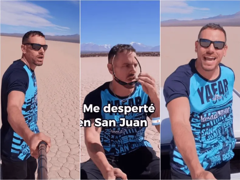 En uno de sus videos, el creador de contenido ironizó con una escena bien de película: "Me desperté en San Juan", dijo mientras recorría la zona con su camioneta y disfrutaba del clima seco y del entorno único que ofrece ese rincón sanjuanino.