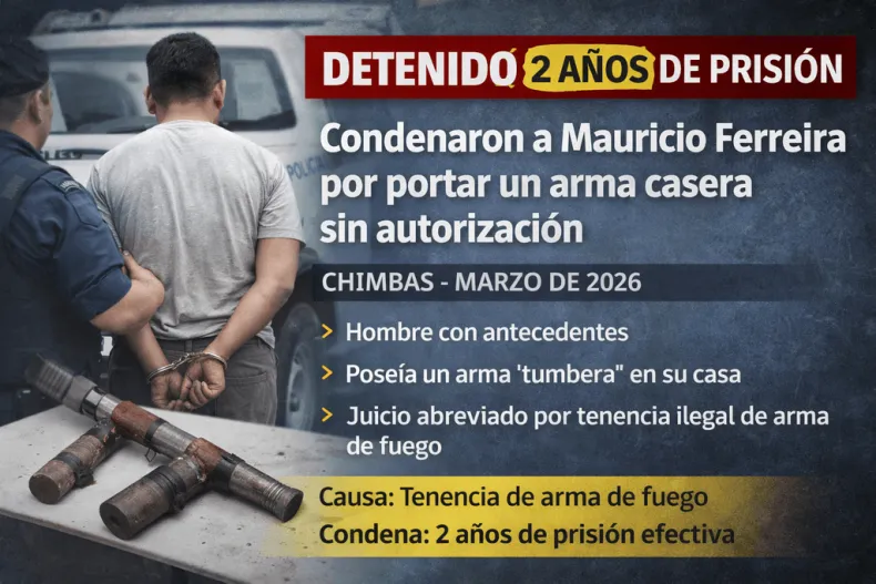 Un allanamiento por una causa de robo terminó destapando un problema todavía más serio en Chimbas. En una casa de calle Benavídez y Proyectada, en Villa Juan Pablo Segundo, la policía encontró un arma de fabricación casera y el dueño de la vivienda quedó complicado al instante. El protagonista fue Mauricio Alejandro Ferreira, que terminó condenado a 2 años de prisión efectiva en un juicio abreviado.