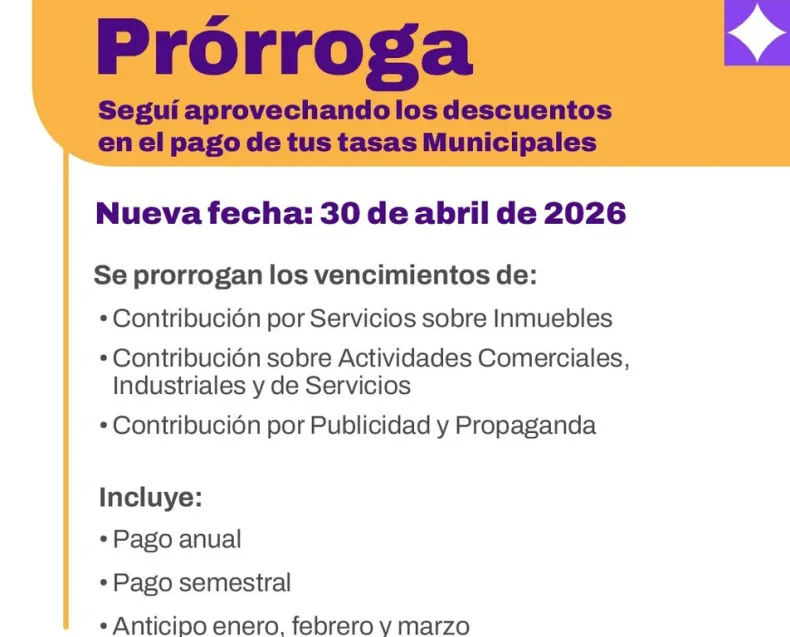La Municipalidad de la Ciudad de San Juan, a través de su Secretaría de Economía y Hacienda, informó una buena noticia para los contribuyentes: mediante la Resolución N° 182 se extendió hasta el 30 de abril de 2026 el plazo para abonar varias tasas municipales.
