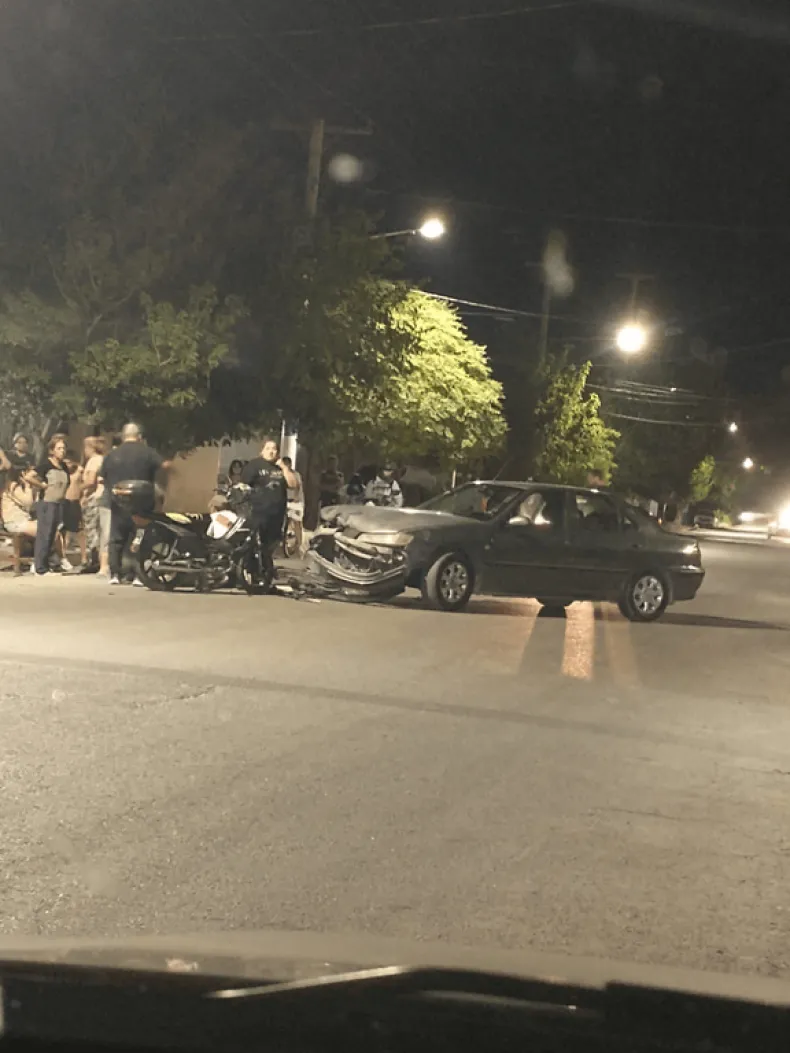 La noche de este viernes terminó con un fuerte sobresalto en Pocito, cuando un auto y una moto chocaron de lleno en la esquina de calle 12 y David Chávez. El golpe fue tan duro que enseguida se armó un clima de tensión en la zona. Vecinos y curiosos se acercaron apenas escucharon el estruendo.
