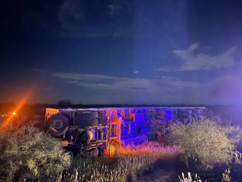 Una madrugada que arrancó con susto fuerte se vivió sobre la Ruta Nacional 20, donde un camión con semirremolque terminó volcado al costado de la calzada después de perder estabilidad. El hecho ocurrió cerca de las 02, cuando un llamado a emergencias alertó sobre un vehículo de gran porte siniestrado en cercanías del control de Tránsito, en 25 de Mayo. Cuando llegaron los efectivos, se encontraron con el transporte recostado sobre un desnivel y parte de la carga esparcida en la zona.