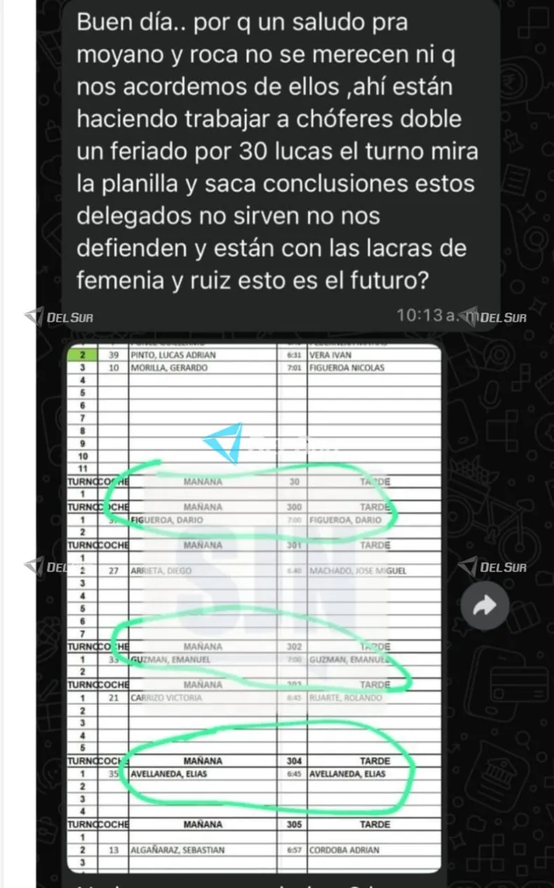 Los trabajadores sostienen que los delegados —quienes deberían representarlos— responden a intereses internos del sindicato, priorizando candidaturas y estrategias políticas por encima de la defensa de sus derechos. En particular, mencionaron sectores vinculados a Femenía y Ruiz, identificados como parte de la lista oficialista de cara a las próximas elecciones en la UTA San Juan, que estarían más enfocados en la campaña interna que en los reclamos de los choferes.