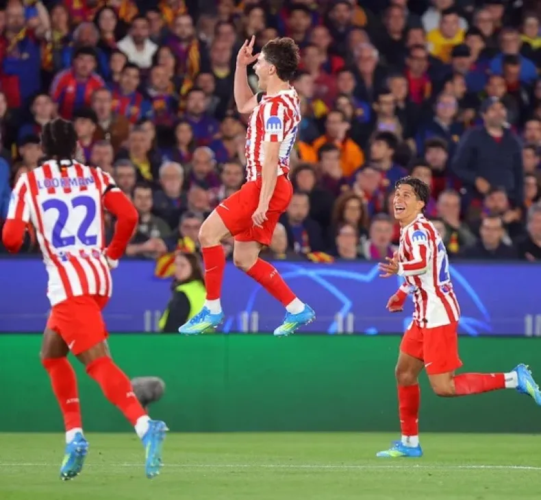 El partido venía parejo hasta el cierre del primer tiempo, cuando Pau Cubarsí vio la roja por una infracción sobre Giuliano Simeone. Esa jugada cambió todo y le dio al conjunto madrileño una chance ideal para lastimar. Del tiro libre nació el 1 a 0: Álvarez acomodó la pelota y la clavó con precisión, sin darle margen al arquero. Fue un golazo de esos que pesan mucho en una serie de esta magnitud.
