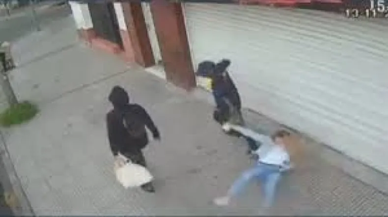 El asalto ocurrió este martes por la tarde en calle Rawson. Dos ladrones les sacaron un celular y un smartwatch antes de escapar por calle Amarfil.