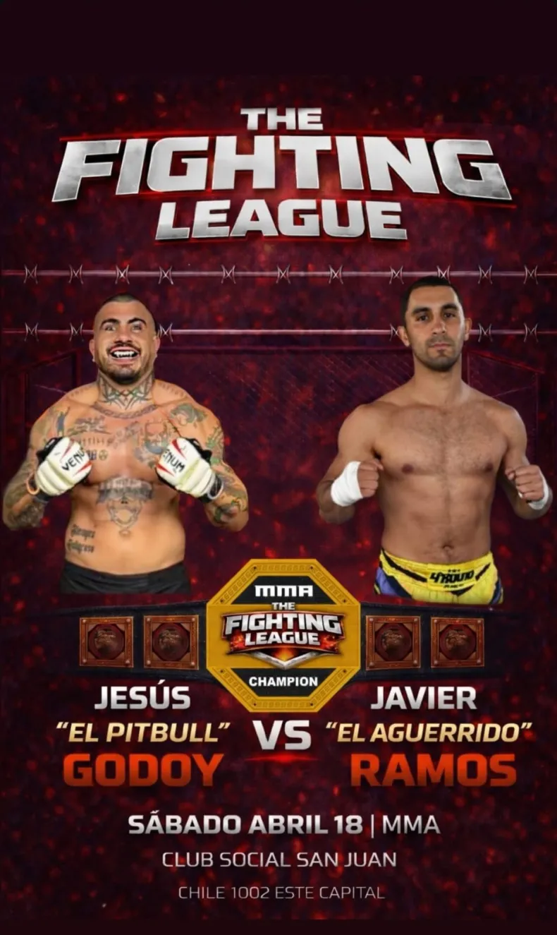 La pelea principal será por un título profesional de MMA, a cinco rounds, frente al mendocino Javier "El Aguerrido" Ramos. Se espera un cruce intenso, de esos que no dan respiro y que suelen dejar todo arriba del ring. El espectáculo lleva el nombre de The Fighting League y está organizado por la academia Pitbull, que ya logró instalar la velada entre las más importantes del circuito.