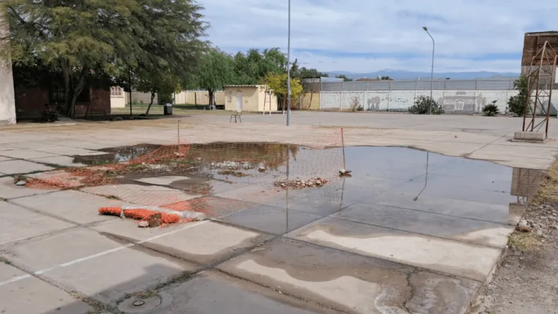 Además, indicó que también se está revisando el sistema de iluminación, porque algunas luminarias siguen presentando fallas. Según detalló, en parte eso se explica por la sensibilidad de los equipos LED ante las variaciones de tensión. En paralelo, continúa la intervención por una pérdida de agua que afectaba al colegio y que obligó a romper parte del hormigón del playón para poder llegar al punto exacto del desperfecto.
