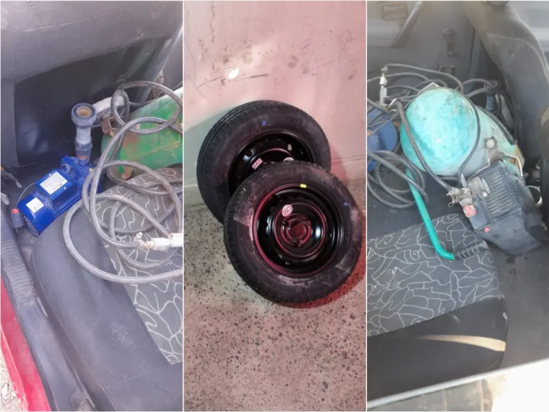 Según informaron fuentes policiales, el hombre escuchó ruidos extraños y enseguida se dio cuenta de que le estaban robando. Al revisar el vehículo, advirtió que el baúl había sido violentado y que faltaban varios elementos. Entre lo sustraído había una rueda de auxilio nueva, con llanta de chapa y cubierta Continental 165/70/R14, además de sus tres tornillos, un gato hidráulico negro, una llave para sacar la rueda y un kit de matafuegos con balizas y chaleco reflectivo, guardado en su bolsa negra original de fábrica.