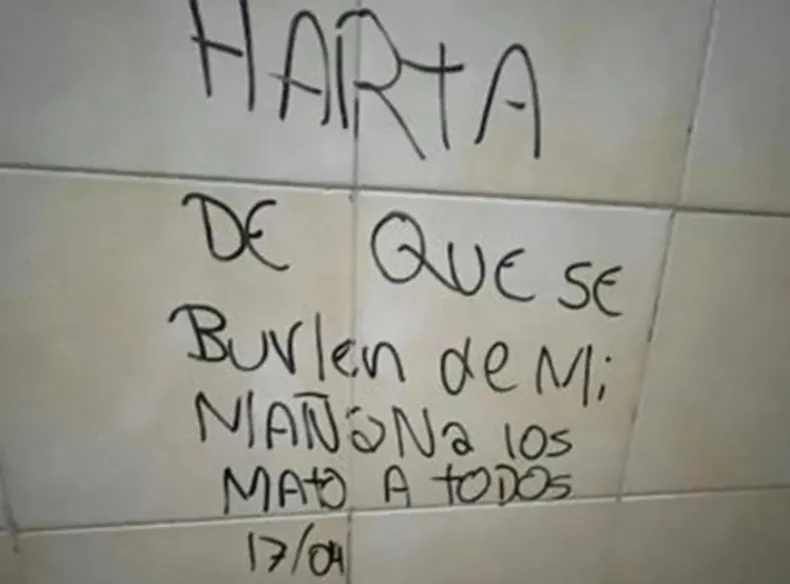 Por ahora no hay certezas sobre quién escribió la amenaza, pero el caso ya está siendo analizado y se lo compara con el episodio registrado en la escuela céntrica. La sensación en la comunidad educativa es de bronca, miedo y mucha incertidumbre, porque no se trata de un hecho menor ni aislado.