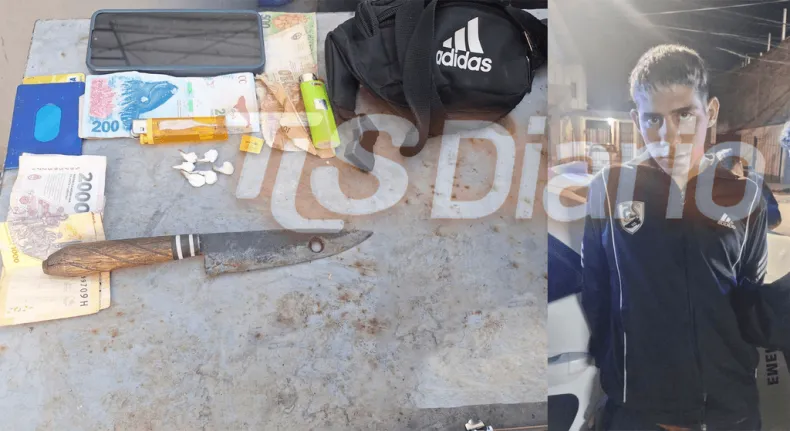 Un control de rutina terminó con la detención de un hombre de 36 años. La policía secuestró seis envoltorios con cocaína y un arma blanca.