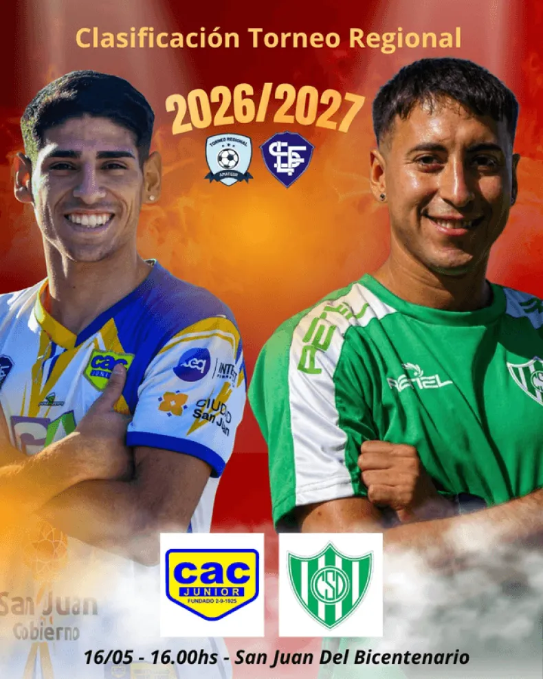 La Liga Sanjuanina de Fútbol ya confirmó cuándo y dónde se va a resolver uno de los partidos más picantes del calendario local. Colón Junior, subcampeón del Torneo Apertura, y Sportivo Desamparados, escolta del Torneo Clausura, se van a cruzar por el segundo boleto al Torneo Regional Amateur 2026/2027. La cita será el sábado 16 de mayo, desde las 16, en el Estadio del Bicentenario.