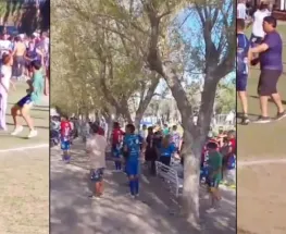 Un partido del torneo "San Juan Deportivo" terminó en descontrol: hubo heridos leves, presencia policial y familias atrapadas en medio de la batalla campal.