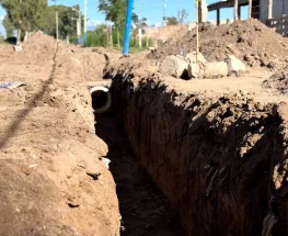 El intendente Daniel Banega visitó y recorrió los trabajos, que incluyen la conducción del agua a través de cunetas, la construcción de un puente de grandes dimensiones en el ingreso al barrio y la instalación de puentes de acceso frente a cada vivi ...