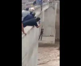 Una tormenta feroz en Mendoza hizo que una topadora fuera arrastrada en el puente de Anchoris. Un trabajador quedó colgado de una cuerda y sus compañeros lo salvaron en el filo de la tragedia.