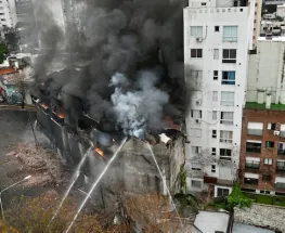 El gobierno bonaerense y el municipio platense avanzarían con la demolición cuando el operativo concluya. El fuego que comenzó en la madrugada en un depósito clausurado y provocó el colapso de la fachada y daños estructurales graves