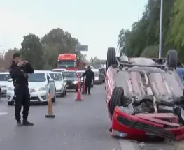 Un Volkswagen Gol Trend volcó en la Ruta 40 sur, a la altura del Mayorista Makro en Rawson. El conductor, Matías Plaza, solo sufrió algunos raspones y golpes leves.