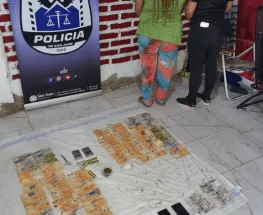 Tras meses de trabajo, la Policía de San Juan allanó una vivienda en el Barrio Los Toneles y encontró cocaína, marihuana, dinero en efectivo y otros elementos ligados a la venta de estupefacientes.