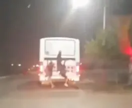 ¡Un peligro!Locura en Chimbas: tres pibes se colgaron de un colectivo en movimiento
