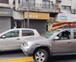 El accidente ocurrió en la intersección de Almirante Brown y Laprida. A pesar del fuerte impacto y los destrozos, no hubo heridos.