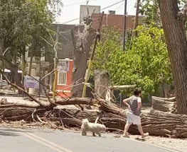Un enorme árbol se cayó de repente sobre la calle Yrigoyen, cerca del Círculo Andaluz. Por suerte, no hubo heridos ni autos rotos.