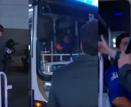 Leandro García Gómez, exnovio de Lourdes Fernández, se cruzó con los medios tras la denuncia de la madre de la cantante. Entre gritos y corridas, disparó contra todos.