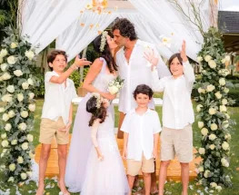 La pareja confirmó su casamiento civil y religioso en la Feliz, con una invitación romántica y un festejo íntimo, pero el actor tuvo un problemita con su divorcio anterior.