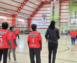 En el Estadio Marta Orellana, la Municipalidad, a través del Área de Deporte, realizó la entrega de camisetas a los adultos mayores de Dos Acequias que practican newcom, una disciplina que cada vez suma más adeptos en el departamento.